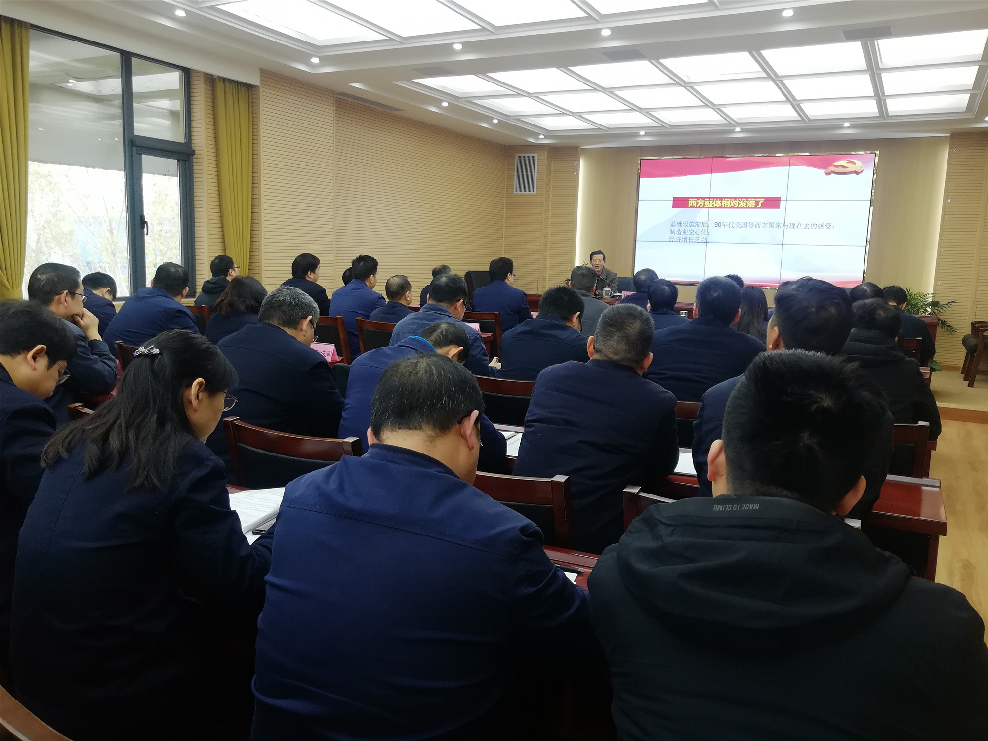 為認(rèn)真學(xué)習(xí)貫徹黨的十九屆五中全會(huì)精神,切實(shí)增強(qiáng)同力水泥豫西運(yùn)營(yíng)區(qū)全體員工的思想自覺(jué)、政治自覺(jué)和行動(dòng)自覺(jué),把十九屆五中全會(huì)的各項(xiàng)決策部署和工作要求落到實(shí)處,12月3日,黃河同力、騰躍同力舉辦黨委理論學(xué)習(xí)中心組(擴(kuò)大)集體學(xué)習(xí)報(bào)告會(huì),邀請(qǐng)洛陽(yáng)市委十八大、十九大精神宣講團(tuán)成員、市委黨校黨史黨建教研部副教授趙家國(guó)作題為“歷史交匯點(diǎn)上的宏偉藍(lán)圖——黨的十九屆五中全會(huì)精神解讀”主題報(bào)告。黃河同力、騰躍同力黨委班子成員、各支部書(shū)記、中層干部和各支部支委代表40余人等聽(tīng)取了報(bào)告。